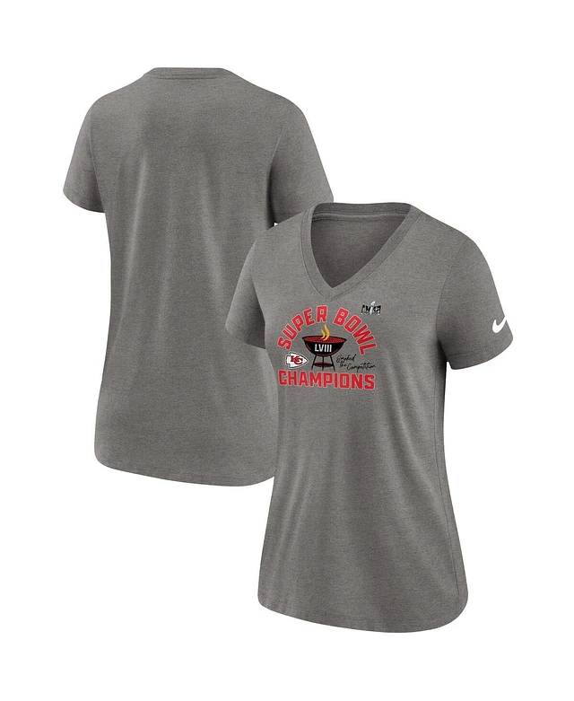 Women's Nike Heather Gray Kansas City Chiefs Super Bowl Lviii Champions Local Tri-Blend V-Neck T-shirt
