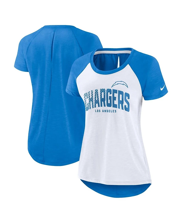 Women's Nike White, Heather Powder Blue Los Angeles Chargers Back Cutout Raglan T-shirt