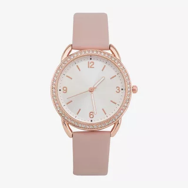 Armitron® Womens Mother-of-Pearl Rose-Tone Pink Leather Strap Watch