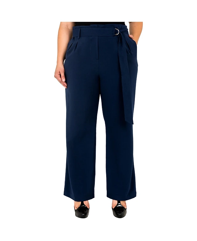 Women's Plus Belted Straight Leg Paper Bag Pants