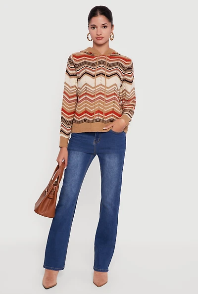 Womens Chevron Pointelle Knit Sweater Hoodie,