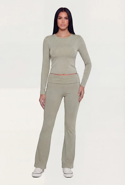 Ribbed Knit Fold Over Flare Leg Pants