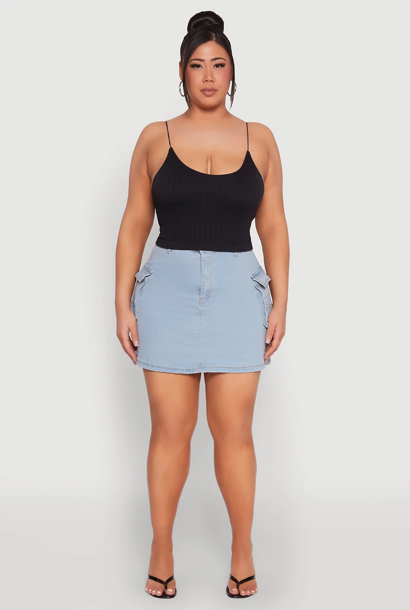 Womens Plus Size Daisy Denim Cargo Skirt, Blue, Size 3X
