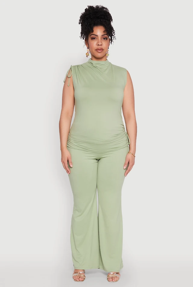 Womens Plus Size High Waisted Fold Over Pants, Green, Size 3X