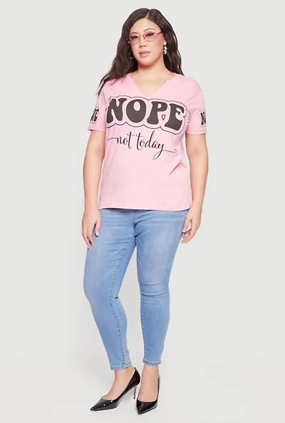 Womens Plus Size Nope Not Today Keyhole Graphic Tee, White, Size 2X