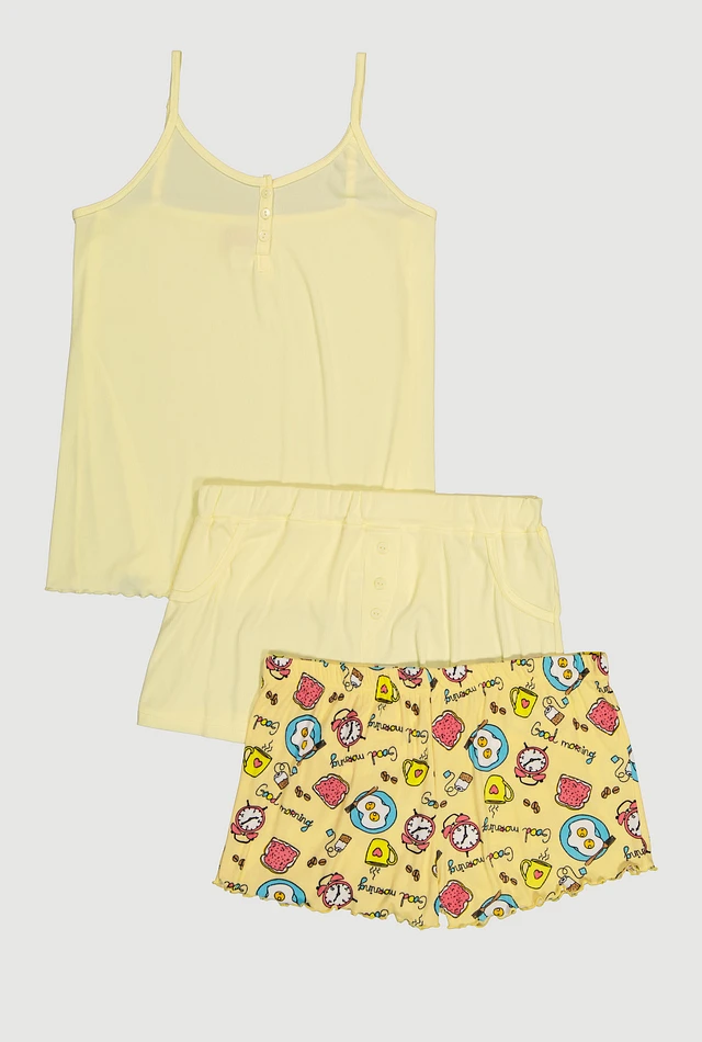 Womens Plus Size Pajama Cami and Good Morning Shorts 3 Pack, Yellow, Size 1X