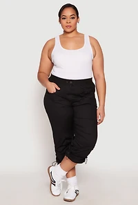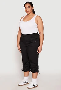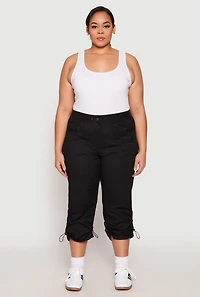 Womens Plus Size Poplin Toggle Drawstring Capri Pants, Black, Size 2X