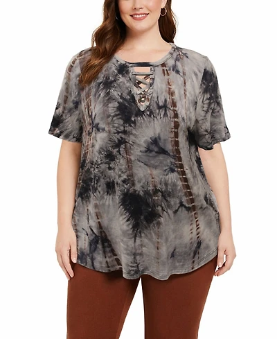 Coin 1804 Plus Tie Dye Lace Up Short-Sleeve Top