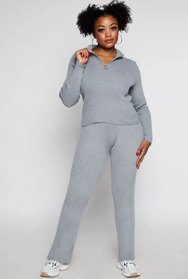 Womens Plus Size Ribbed Knit Pants, Grey, Size 2X