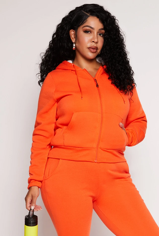 Womens Plus Size Sherpa Lined Zip Front Hoodie, Orange, Size 1X