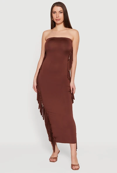 Side Fringe Maxi Tube Dress