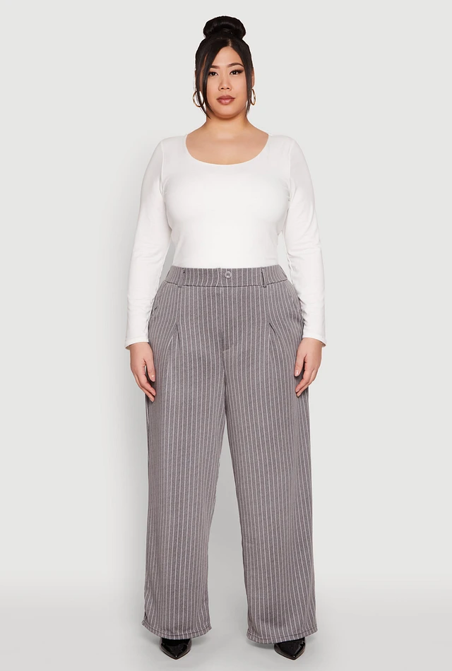Womens Plus Size Striped Wide Leg Pants, Grey, Size 2X