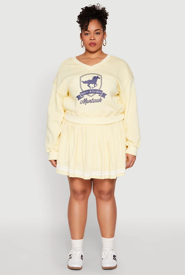 Womens Plus Daisy Pleated Skirt with Varsity Stripe Detail,