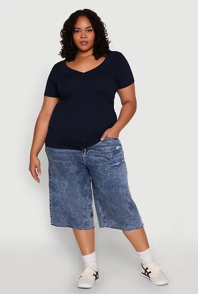 Womens Plus V Neck Short Sleeve Tee,