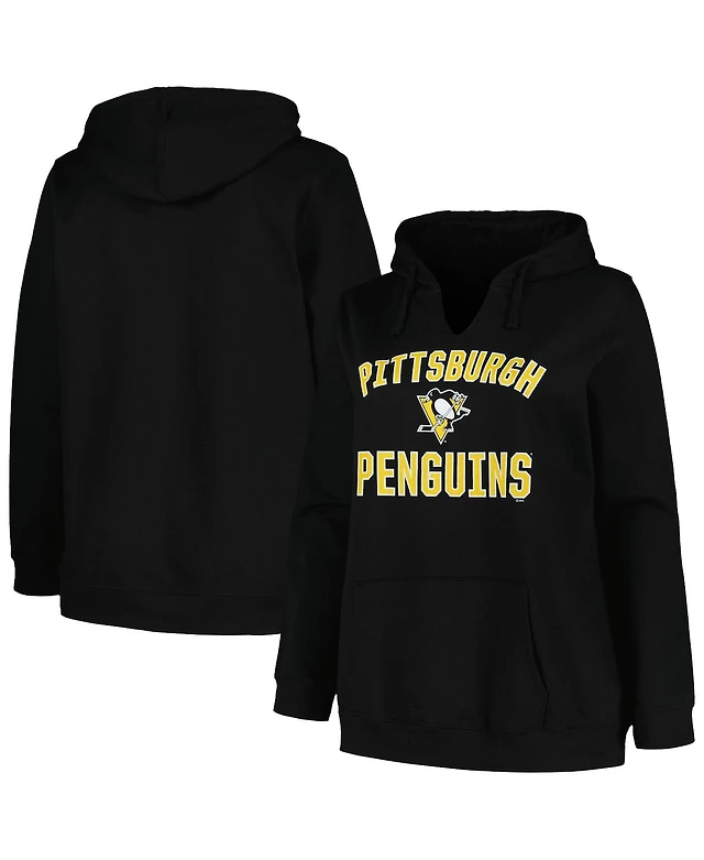 Women's Profile Black Pittsburgh Penguins Plus Size Arch Over Logo Pullover Hoodie