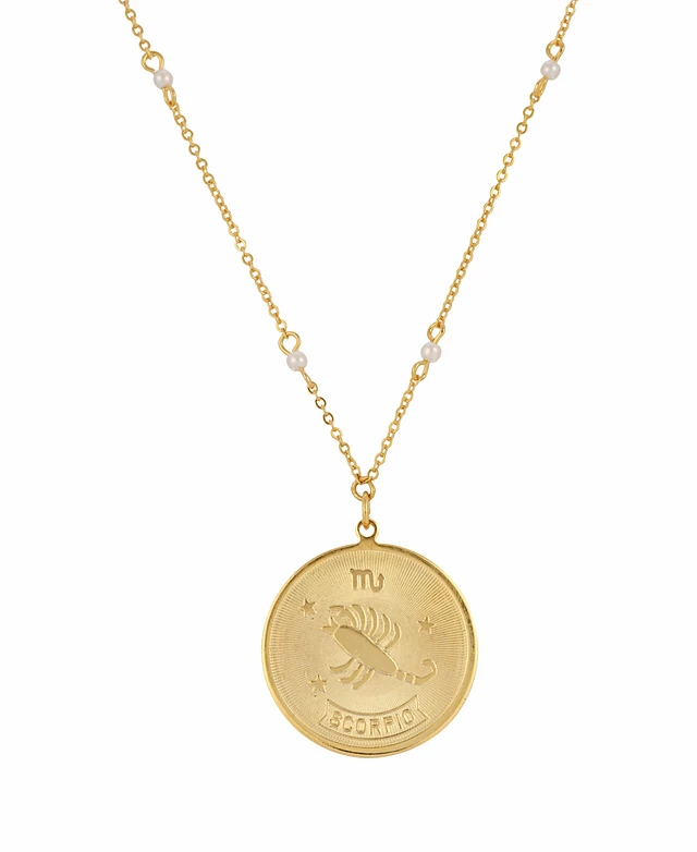 Bling Jewelry Scorpio Zodiac Sign Astrology Horoscope Round Medallion Pendant Necklace Antiqued Sterling Silver
