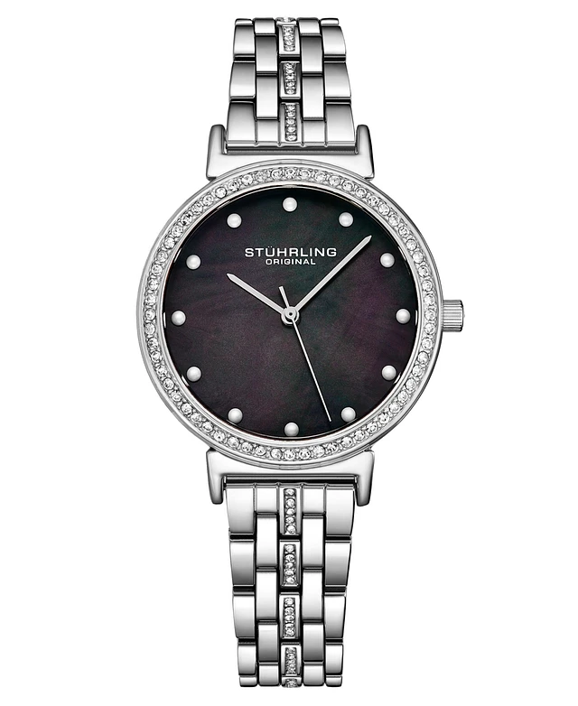 Women's Silver-Tone Link Bracelet with Crystals Studded Strip Watch 33mm