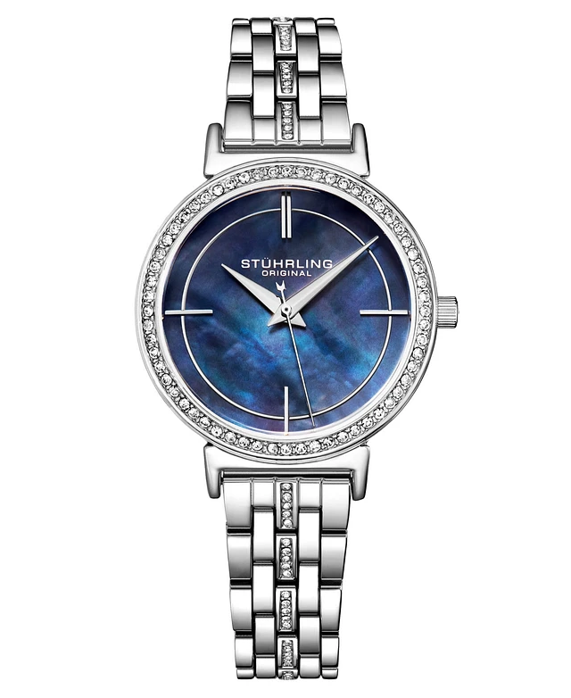 Women's Silver-Tone Link Bracelet with Crystals Watch 33mm