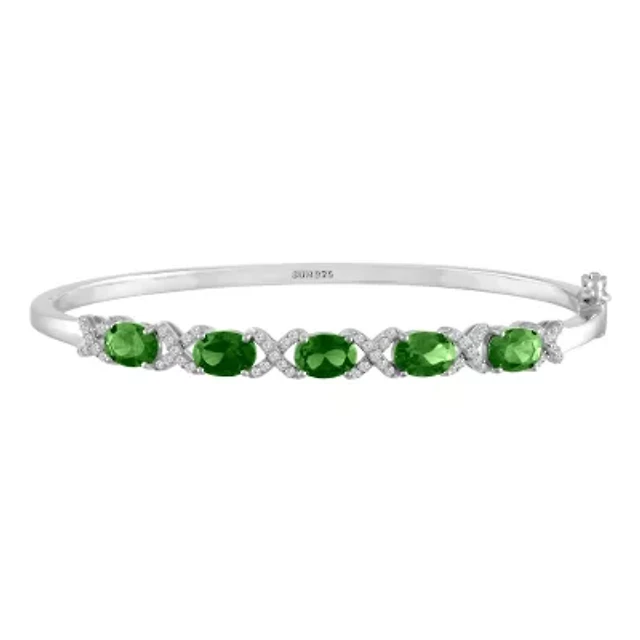 Womens Simulated Emerald Sterling Silver Bangle Bracelet