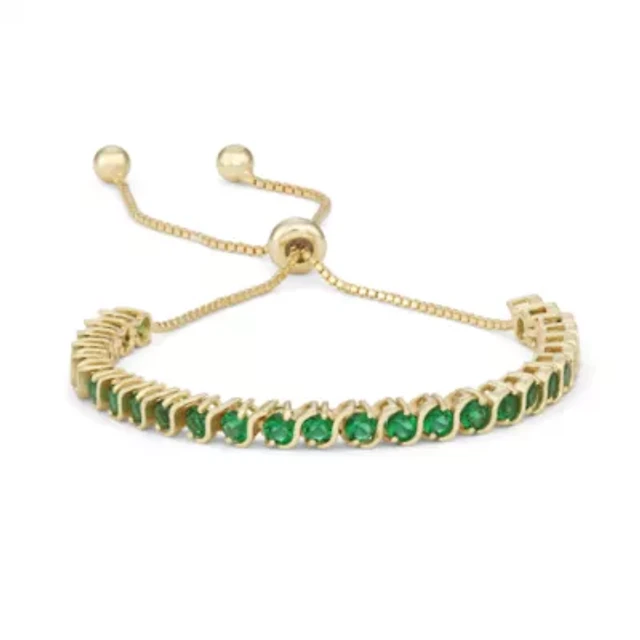 Womens Simulated Green Emerald 14K Gold Over Silver Bolo Bracelet
