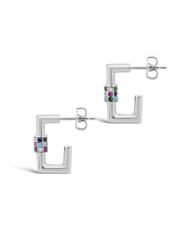 Sterling Forever Square Cubic Zirconia Carabiner Clip Huggie Hoop Earrings