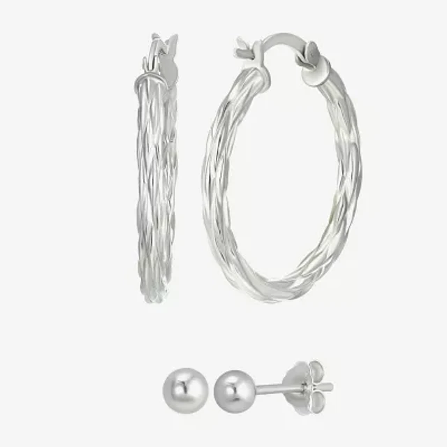 Silver Treasures Polish Womens Sterling Silver 2 Pair Earring Set