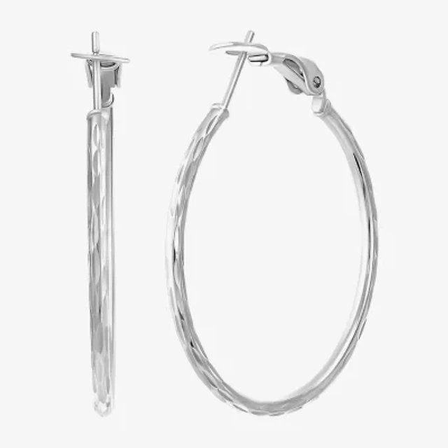 Womens Sterling Silver 36mm Hoop Earrings