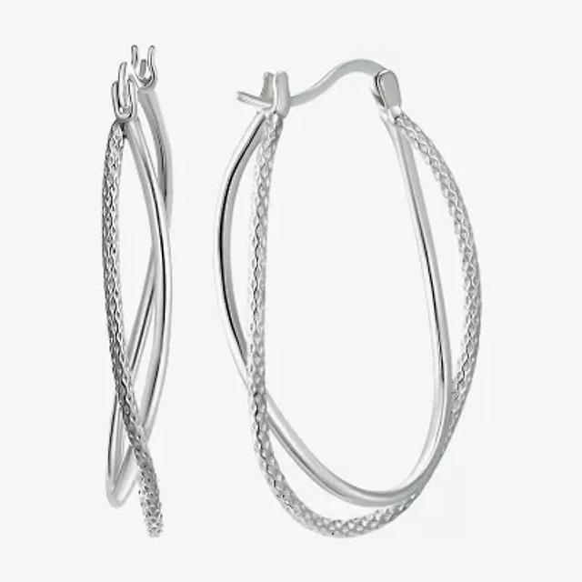 Silver Treasures Womens Sterling Silver 37mm Oval Hoop Earrings