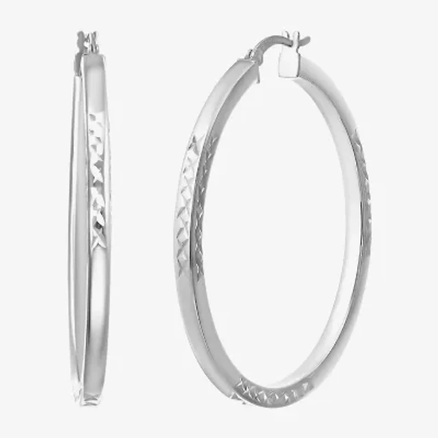 Womens Sterling Silver 39mm Round Hoop Earrings