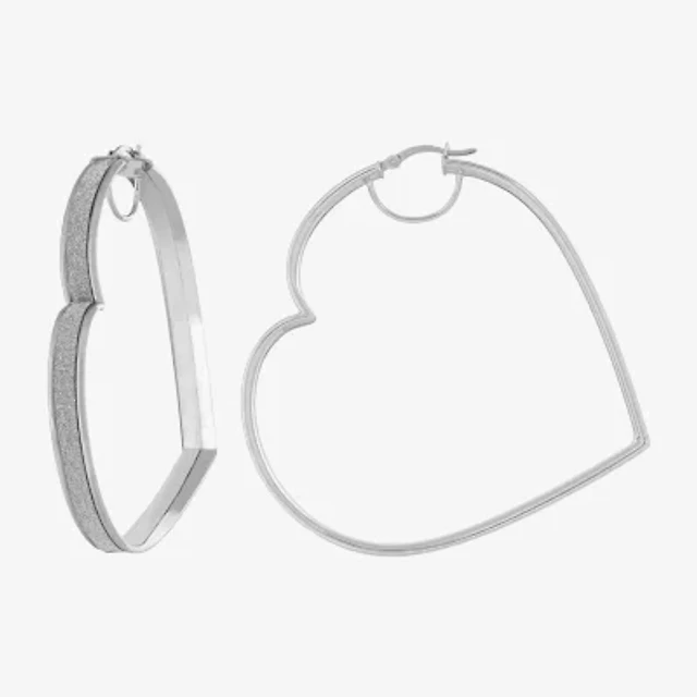 Womens Sterling Silver 60mm Heart Hoop Earrings
