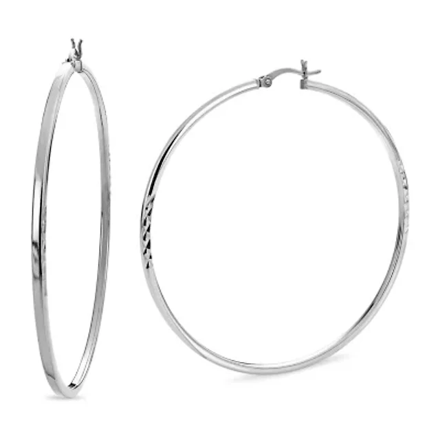 Womens Sterling Silver 49.5mm Hoop Earrings