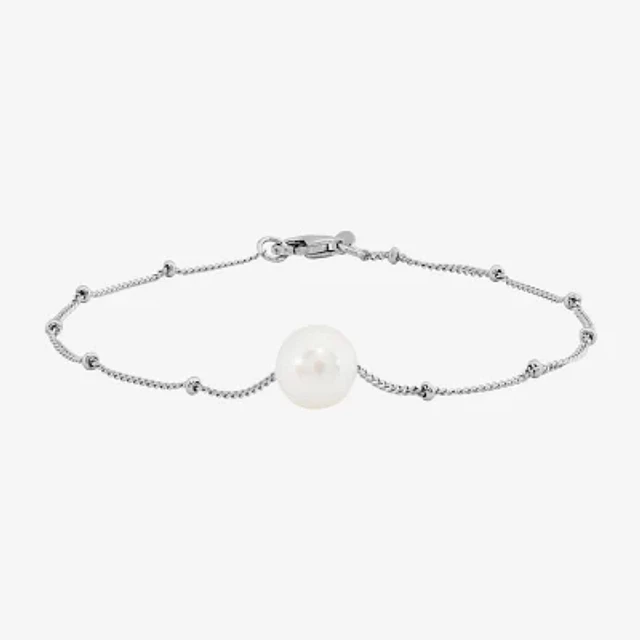 Womens Sterling Silver 7.5 Inch Solid Bead Chain Bracelet