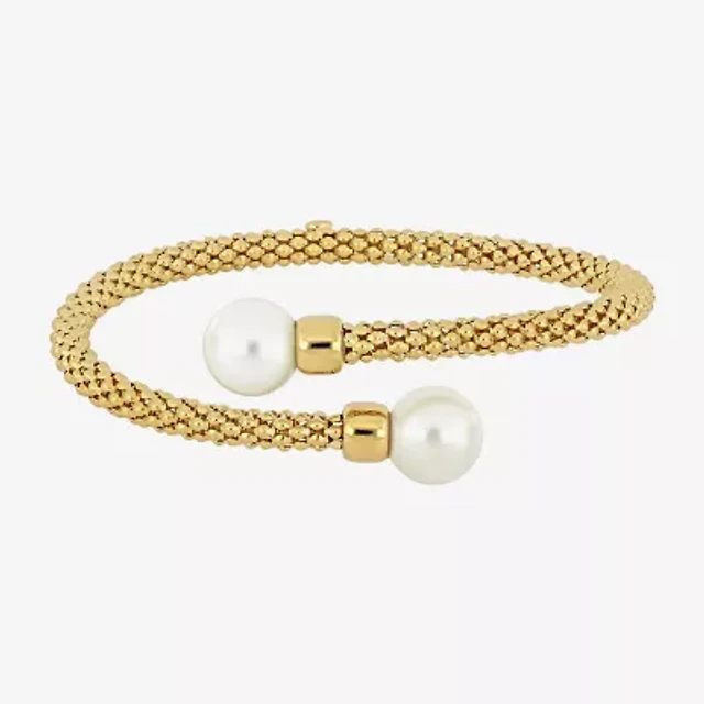 Womens Sterling Silver Cuff Cultured Freshwater Pearl Bracelet
