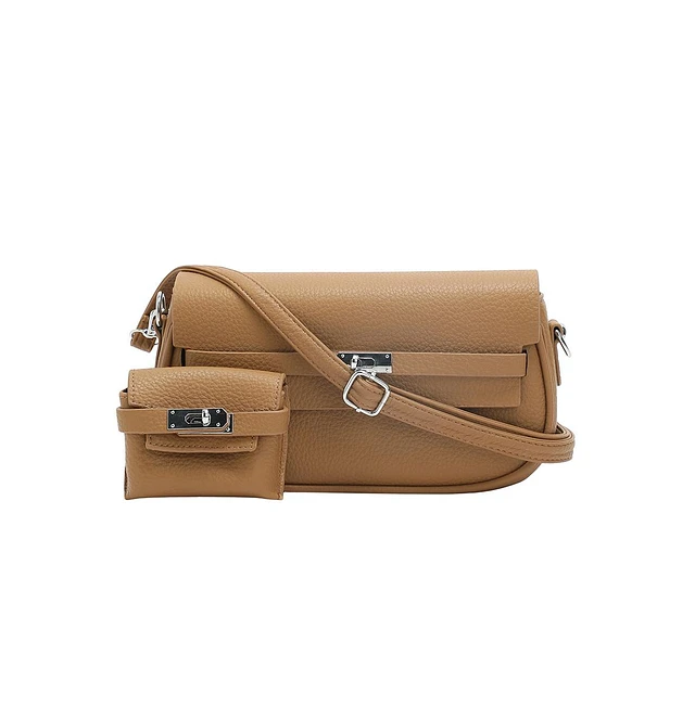 Women's The Overlap-Curve Sling Bag With Pouch - Tan Brown