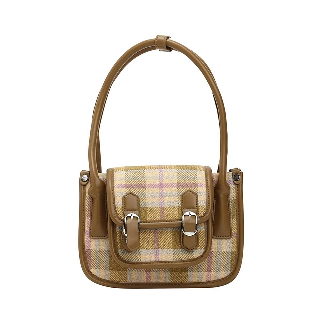 Women's The Tartan Shoulder Bag - Tan Brown & Yellow Ochre