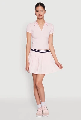 Womens Varsity Stripe Detail Mini Pleated Skirt,