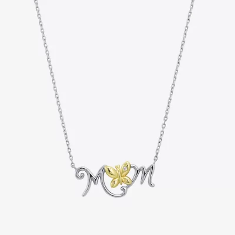 Womens White Cubic Zirconia Sterling Silver Butterfly 18 Inch Pendant Necklace