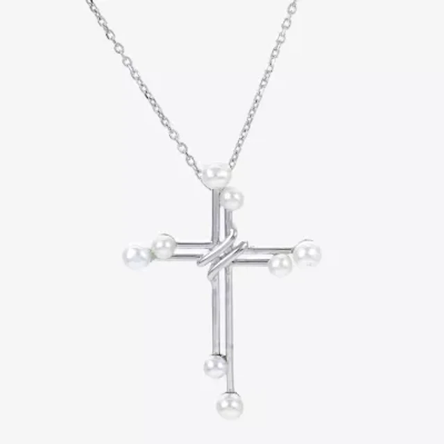 Womens White Cultured Freshwater Pearl Sterling Silver Cross 18 Inch Pendant Necklace