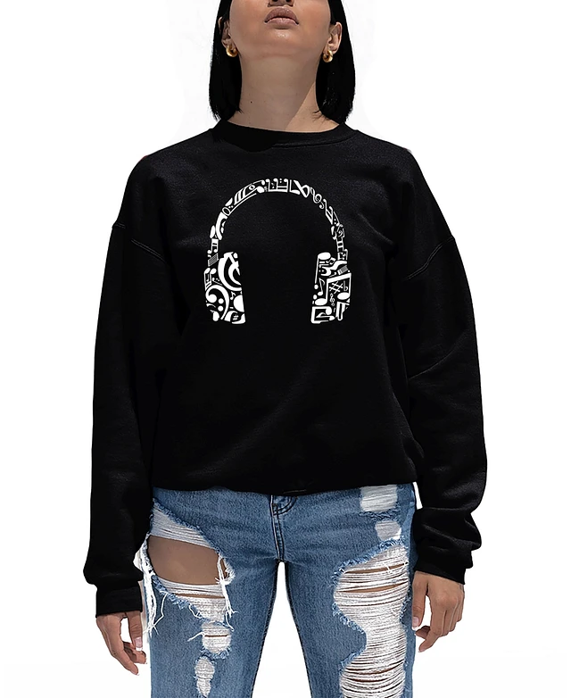 Women's Word Art Music Note Headphones Crewneck Sweatshirt