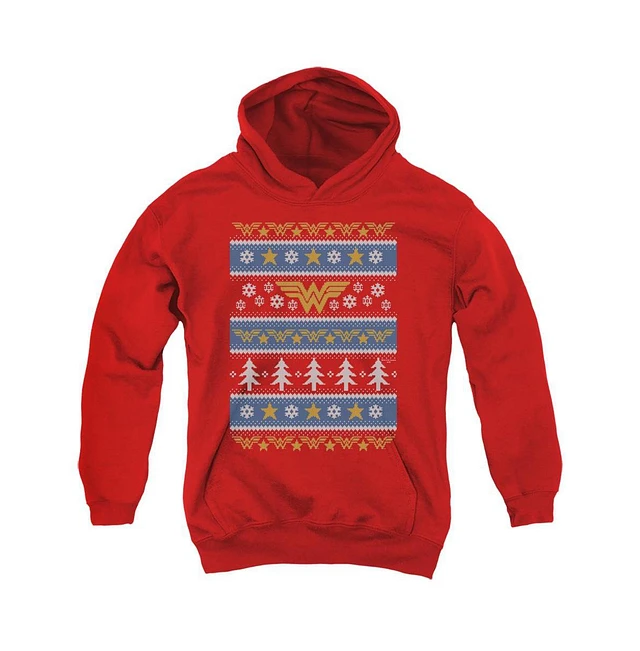 Wonder Woman Boys Dc Youth Comics Christmas Sweater Pull Over Hoodie / Hooded Sweatshirt
