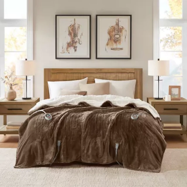 Sealy® Flannel & Sherpa Heated Midweight Blanket