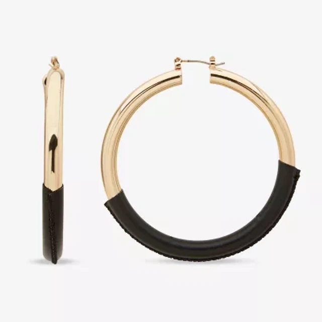 Worthington Gold Tone & Black Leather Wrap Womens 37mm Hoop Earrings