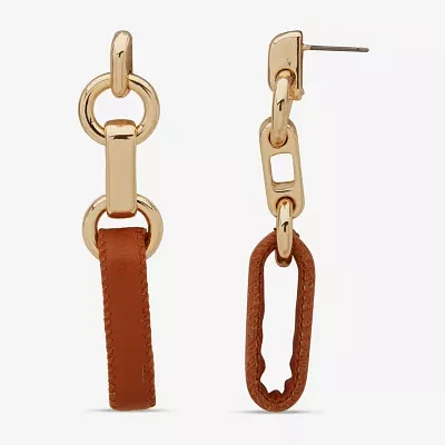 Worthington Gold Tone Cognac Leather Womens Drop Earrings