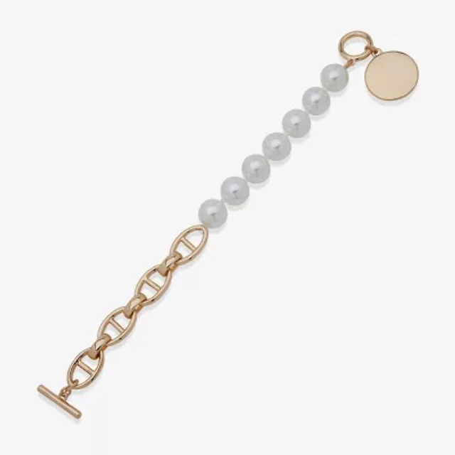 Worthington Gold Tone Toggle Womens White Simulated Pearl Stretch Bracelet
