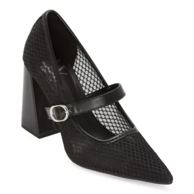 Pointed Toe Ankle Strap Block Heel Pumps