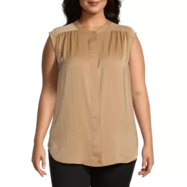 Worthington Womens Plus V Neck Sleeveless Blouse