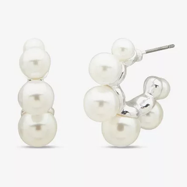 Worthington Silver Tone Simulated Pearl Hoop Earrings