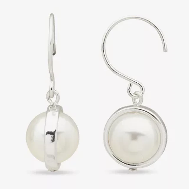 Worthington Silver Tone Womens Simulated Pearl Drop Earrings
