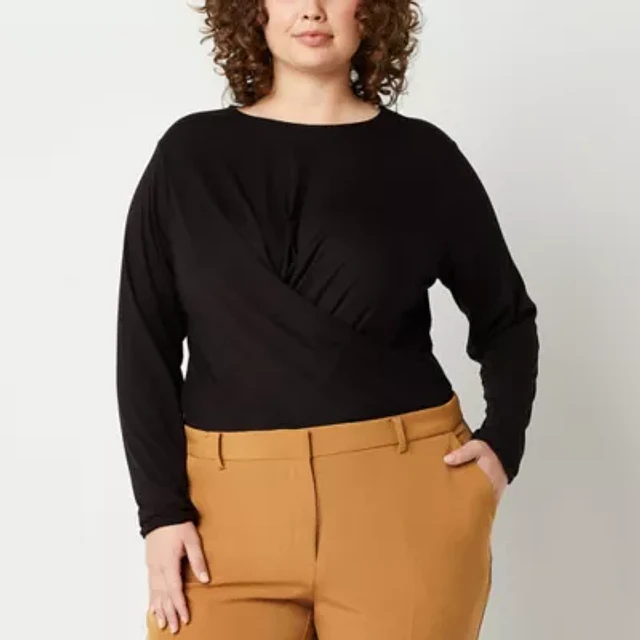 Worthington Womens Crew Neck Long Sleeve Bodysuit Plus