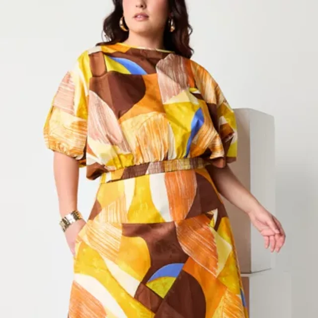 Worthington Womens Crew Neck Long Sleeve Plus Blouse